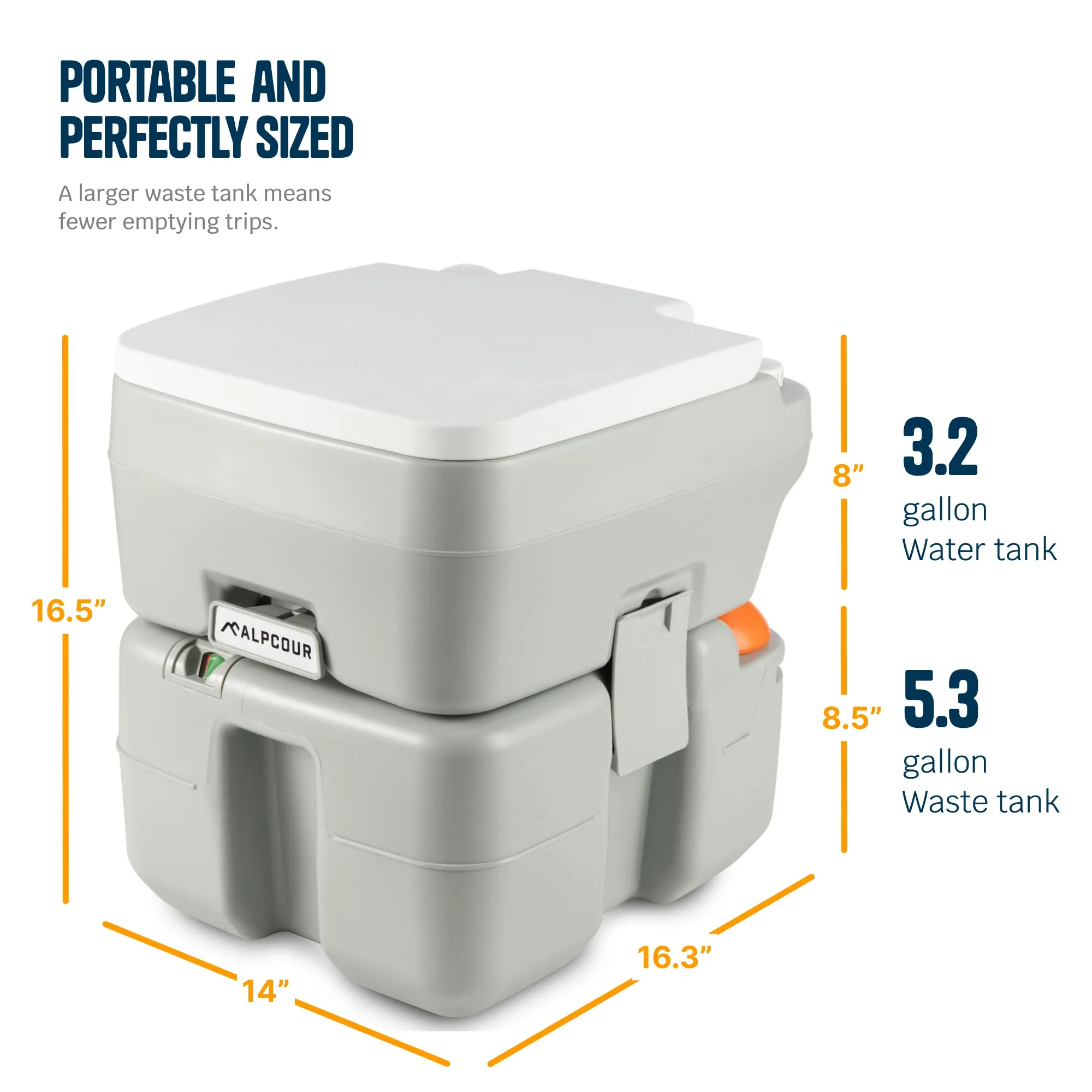 Alpcour Portable Toilet for Camping with 5.3 Gallon Waste Tank