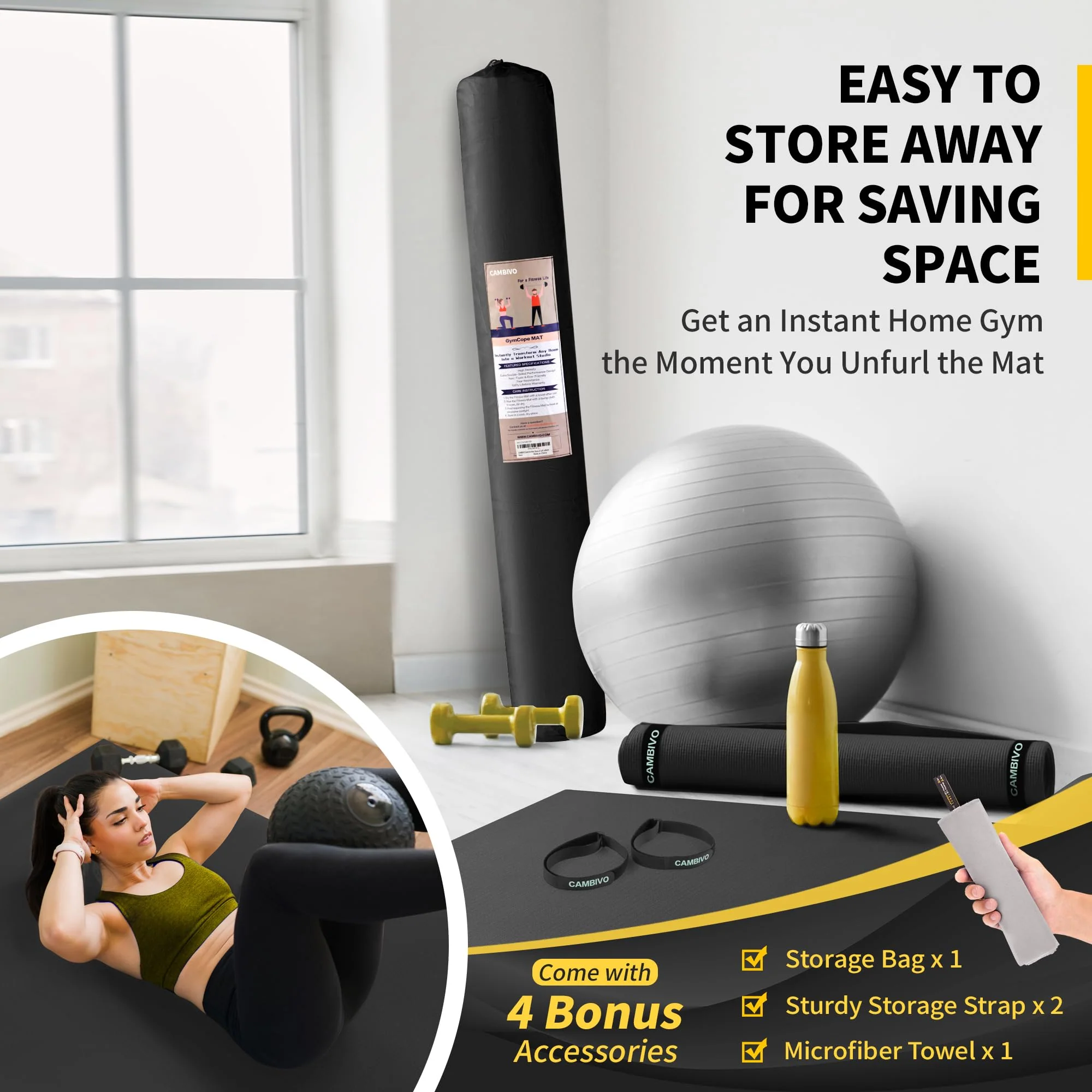 - Package Contents & Hassle-Free Assurance: Each exercise mat comes with 1 microfiber towel (27''x 16''), 2 storage straps, and 1 storage bag; we stand behind every quality exercise mat and provide 24-hour online professional customer service for our customers