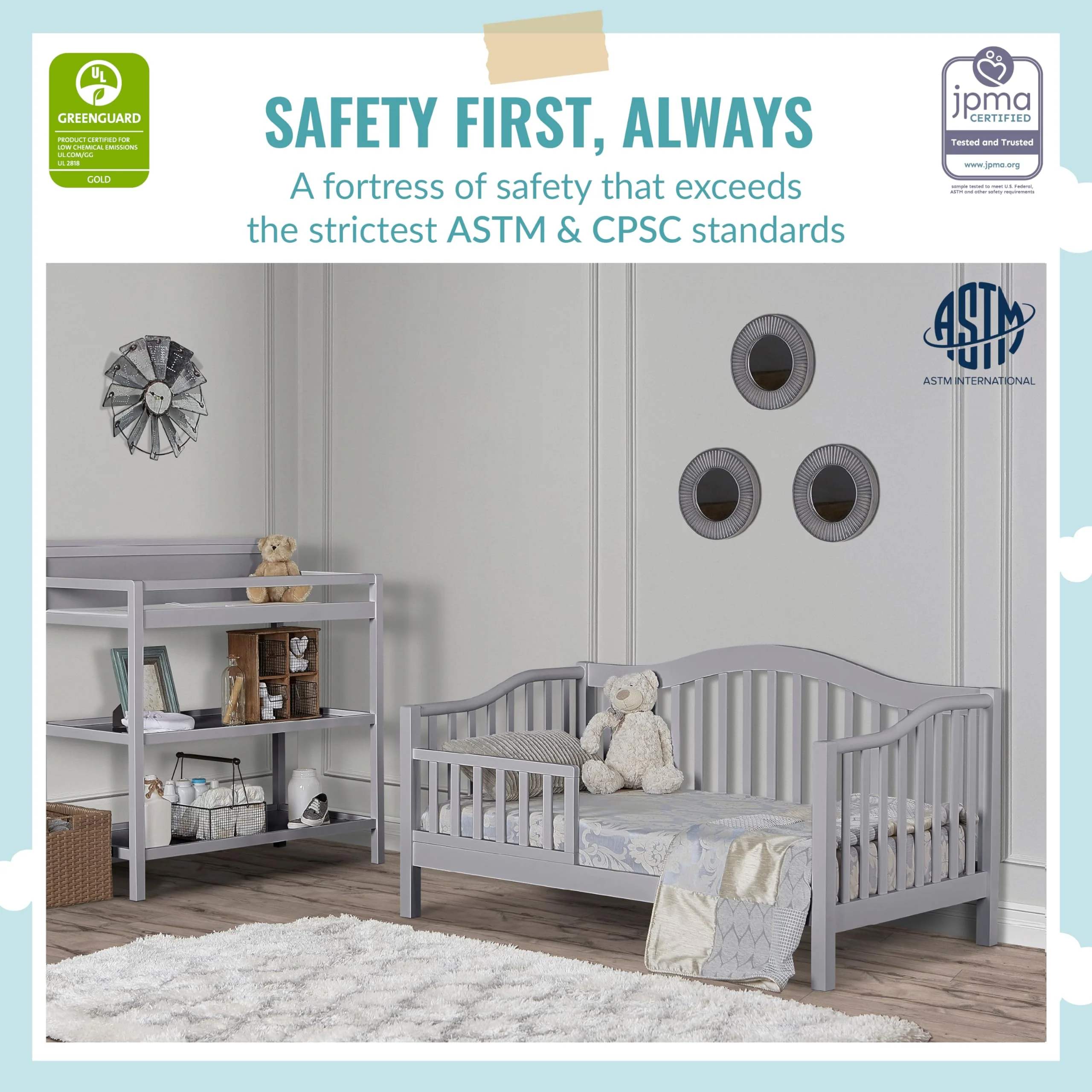 - ALWAYS SAFE: The Austin is JPMA certified and meets/exceeds all applicable ASTM/CPSC standards. Recommended for children 18 months to 5 years old or up to 50 pounds. Only eco-friendly, child-safe water-based paints used