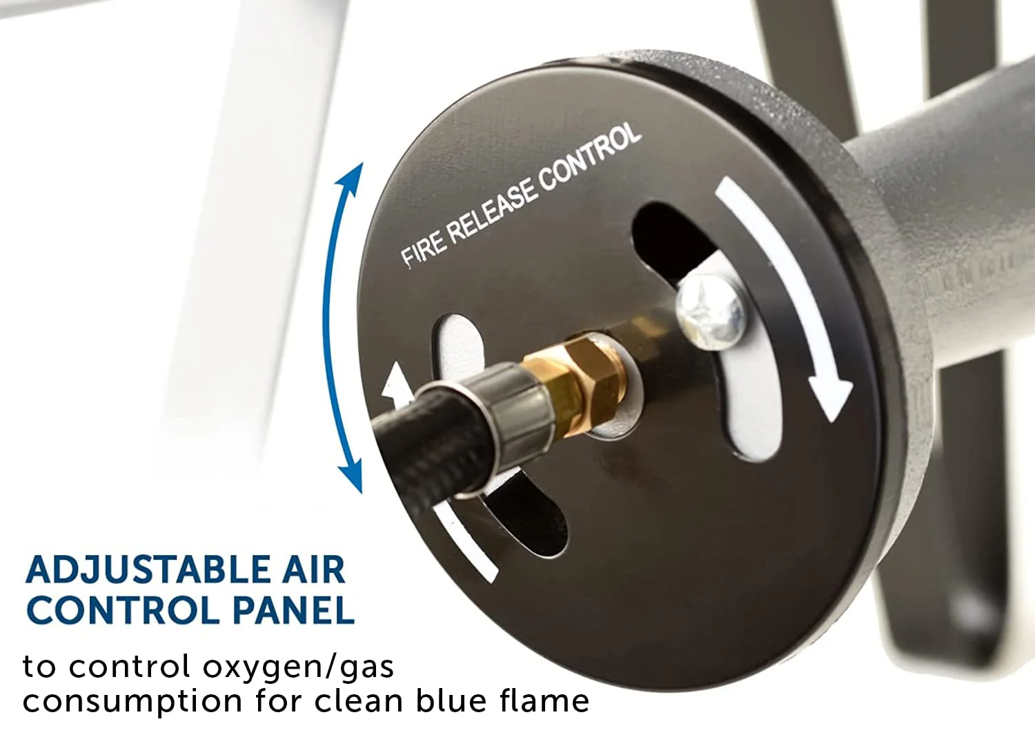 - GAS REGULATING KNOB gives you control over flame size; AIR SUPPLY REGULATOR RING allows you to achieve an even BLUE flame.