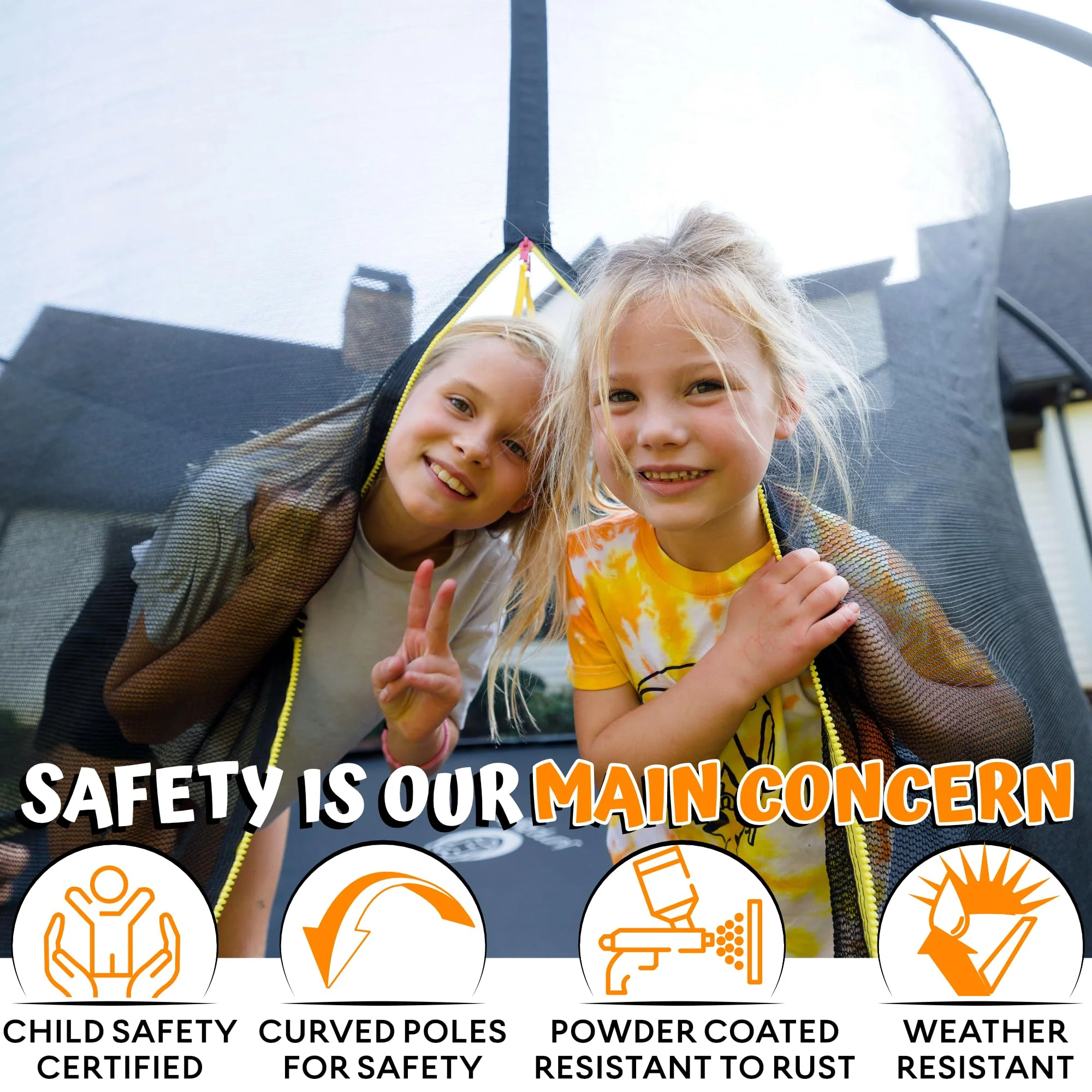 - Your kid's fun and safety - Our Responsibility! For your family's safety we innovated our trampolines for kids and adults with next gen curved poles designed to protect your children from accidents or injury. Jumpzylla trampolines comply with ASTM F381-16 Standard Safety Specification. We never compromise on safety, or quality, our mission is to deliver a heavy duty trampoline for endless hours of fun with zero worries.
