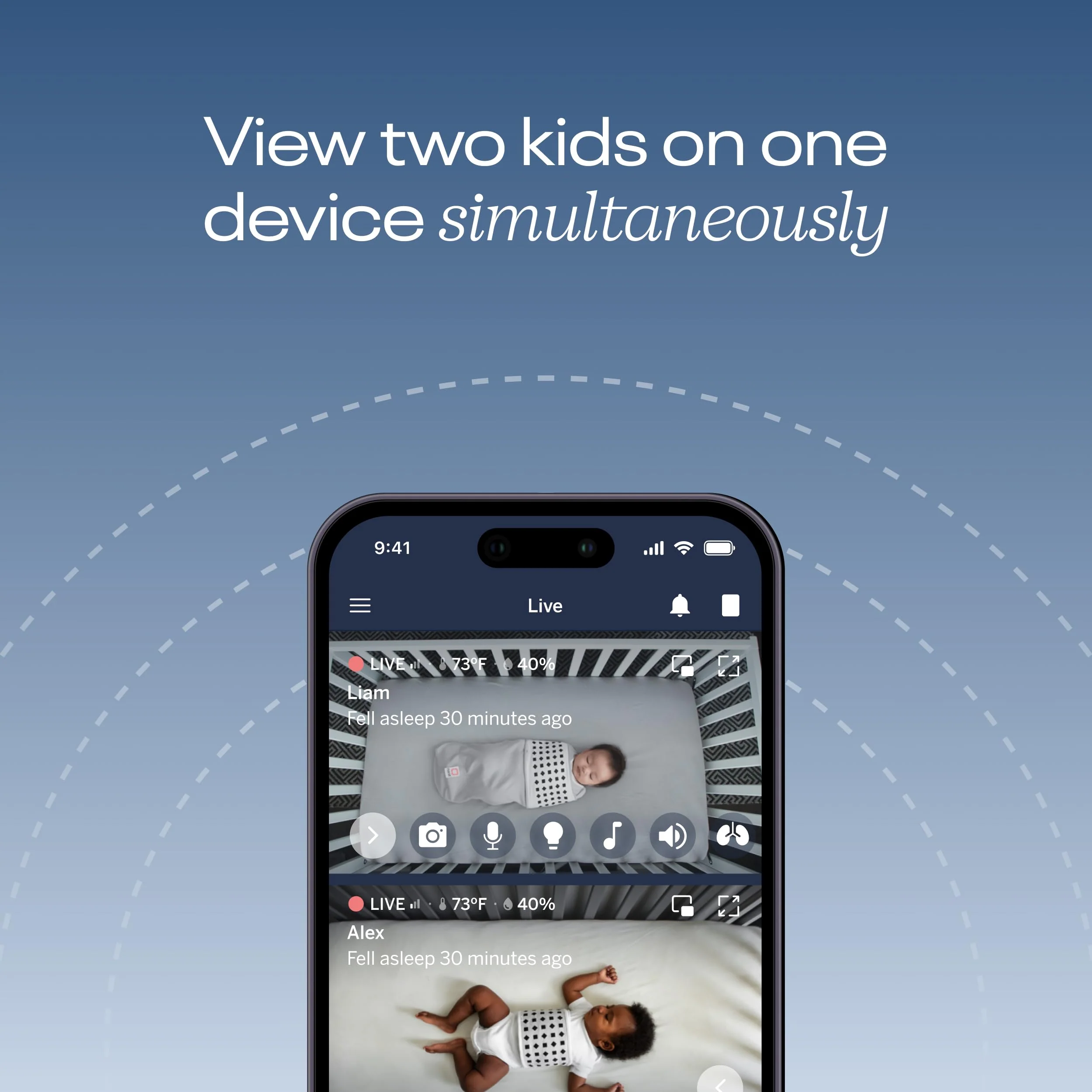 - Features: Real time sound and motion alerts, 2-way and background audio, temperature and humidity. The only smart monitor with Split Screen feature, allowing users to view two screens simultaneously on one device. HSA/FSA eligible