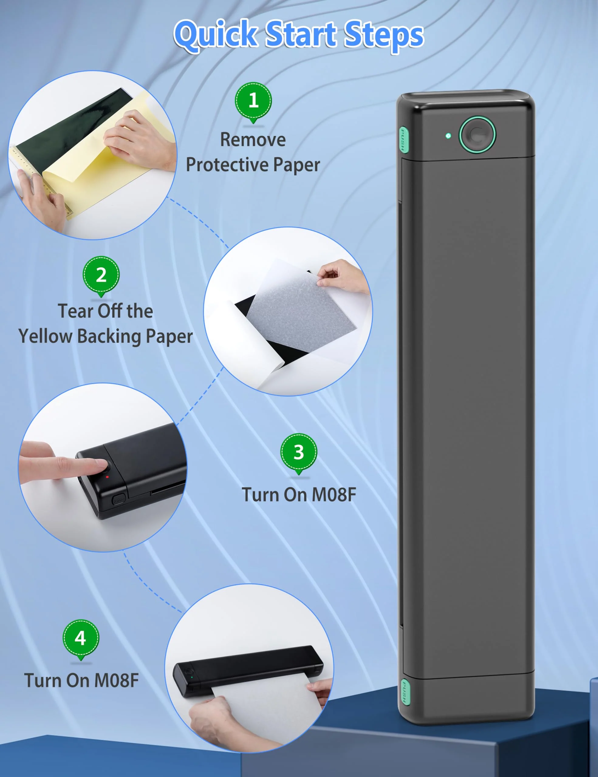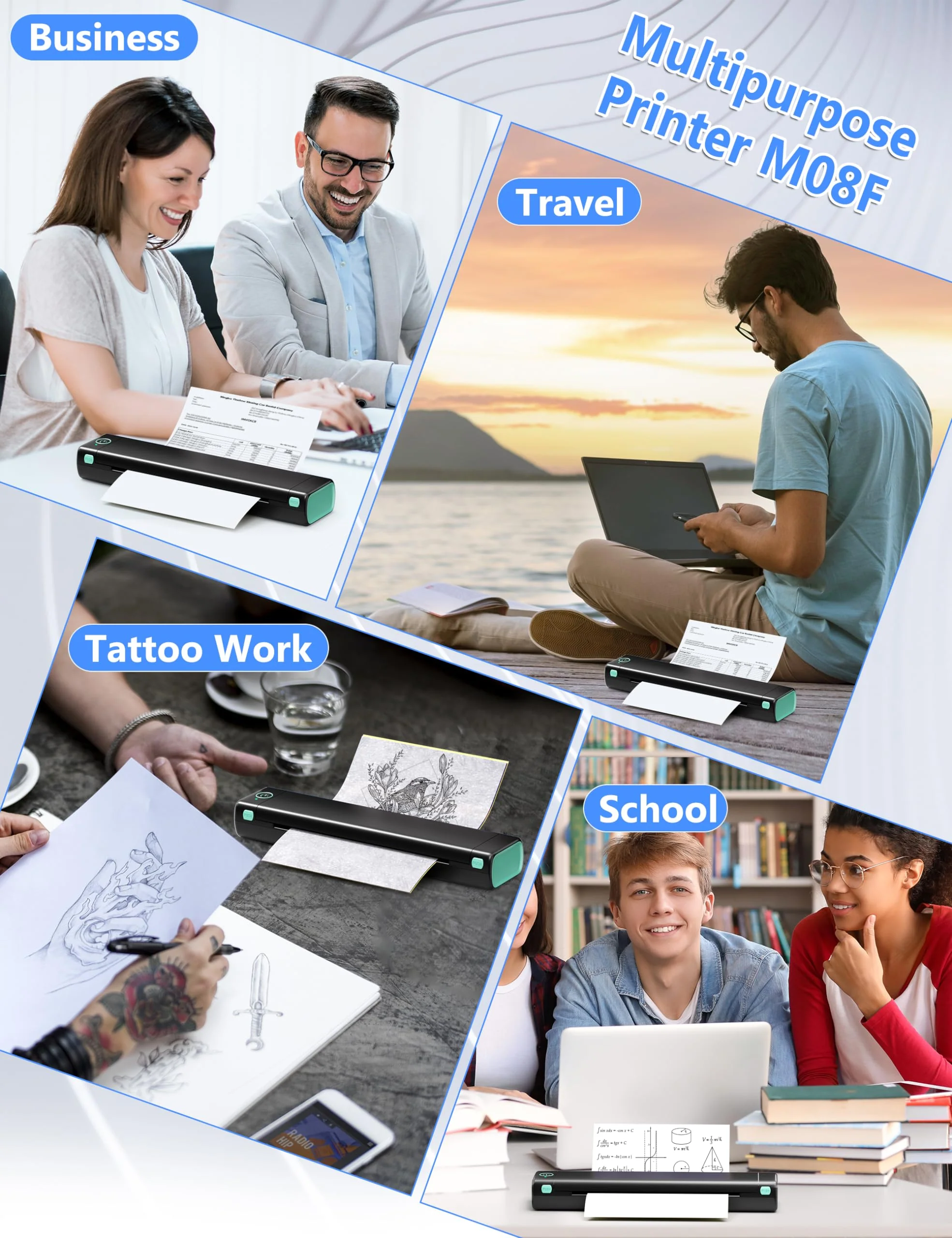 - [Thermal Printing] Bluetooth M08F tattooing stencil maker use thermal technology - don't require ink, toner, or ribbons, no ink-related blockages and cleaning issues. And instead you only need to replace the tattoo transfer paper and continue with the next tattoo pattern printing.