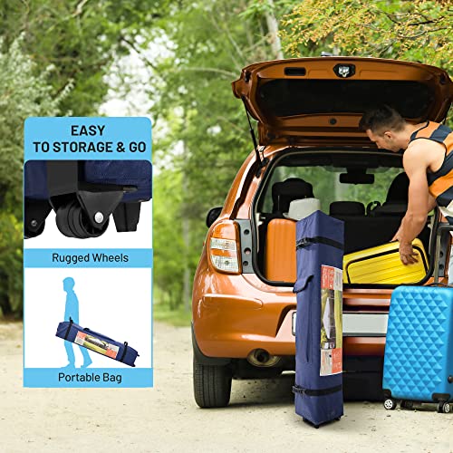 - Easy To Move & Storage: 49” x 8.3” x 8.3” portable wheeled bag makes it easy to get over concrete, dirt, and grass, and you don't need to carry the load. When taking down, the tarpaulin does not need to be removed from the frame, and it can be put into the wheel storage bag directly.