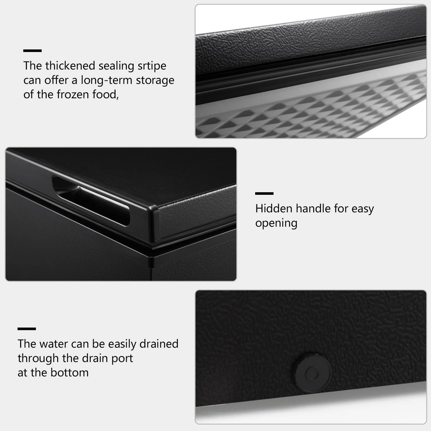 - 【Flip-up Lid with Sealing Strip】This deep chest freezer has a flip-up lid that is connected by premium hinges for smooth lift. And the lid is integrated with sealing strips to achieve better thermal insulation effect.