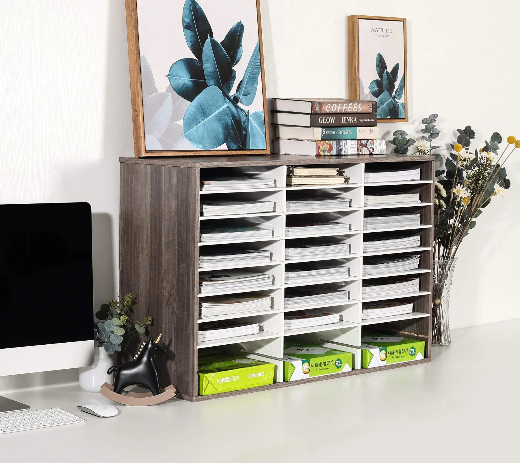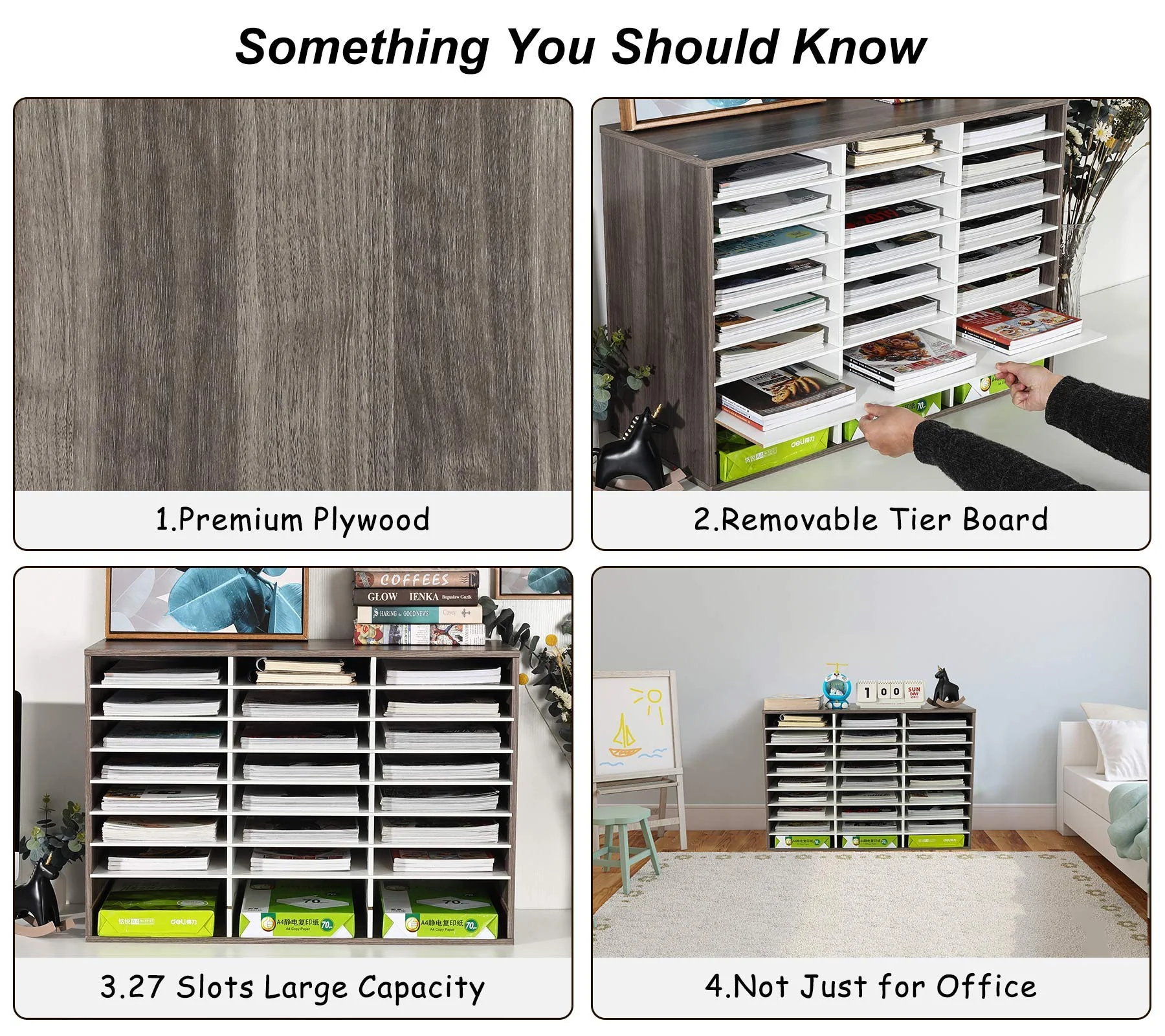 - Large Capacity & Space Saver - With 27 slots and the ability to store 13000 sheets of A4 paper, our mail sorter offers ample space to store your literature, books, magazines, and important documents. If you need to hold tall files, simply remove the layers to create a tall compartment. This mail sorter is perfect for those who want to save space while maximizing storage capacity.