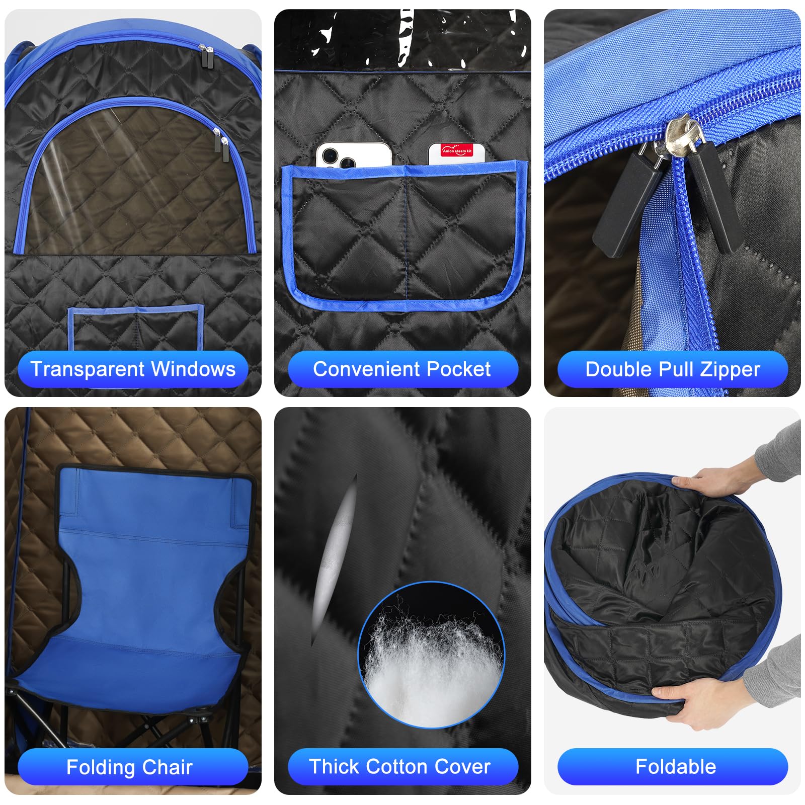 - 【Extra Large Size 31.5“x 31.5“ x 51.2“】The oversized steam room is suitable for adults of different sizes. The steam tent is equipped with a waterproof folding chair, allowing you to enjoy the sauna more comfortably.