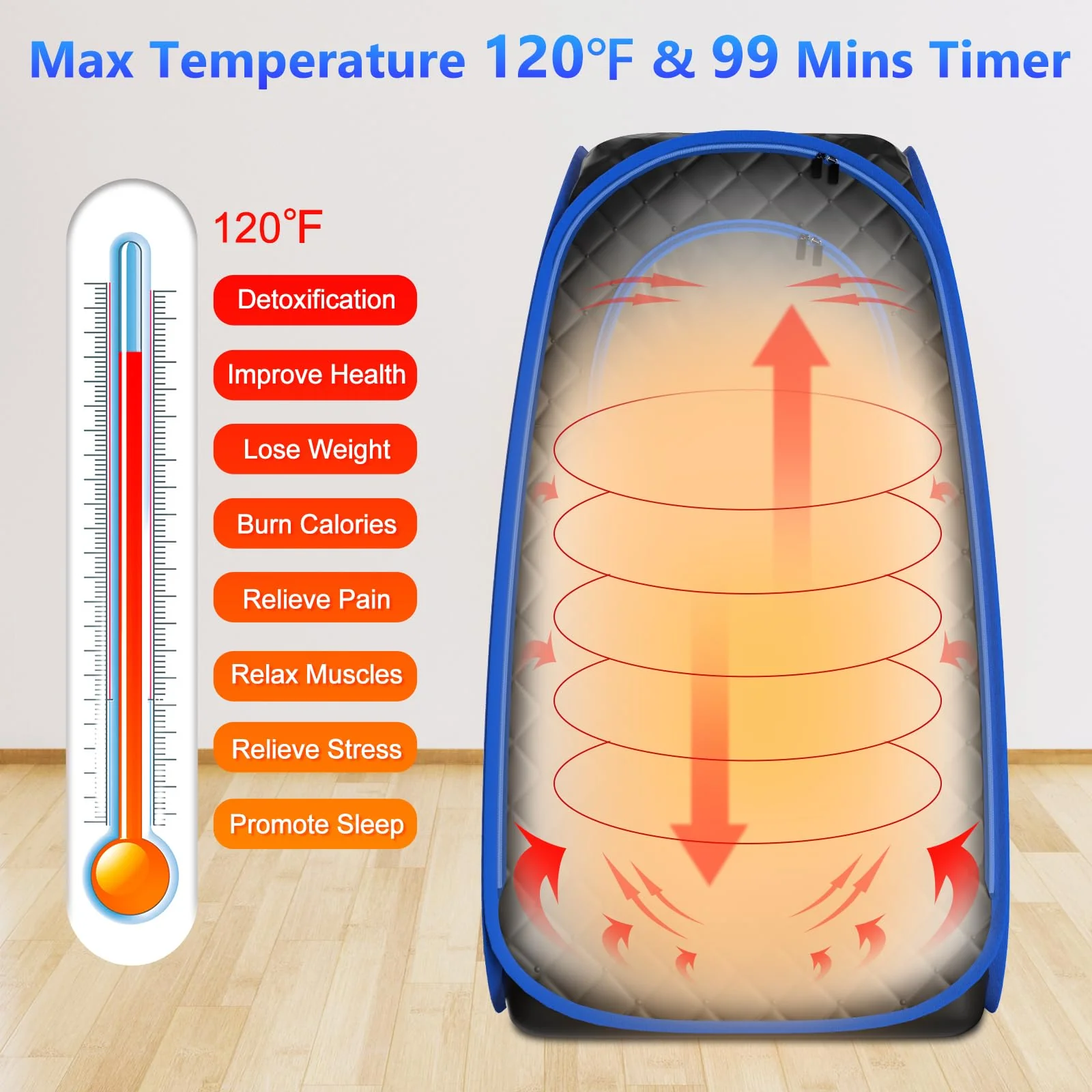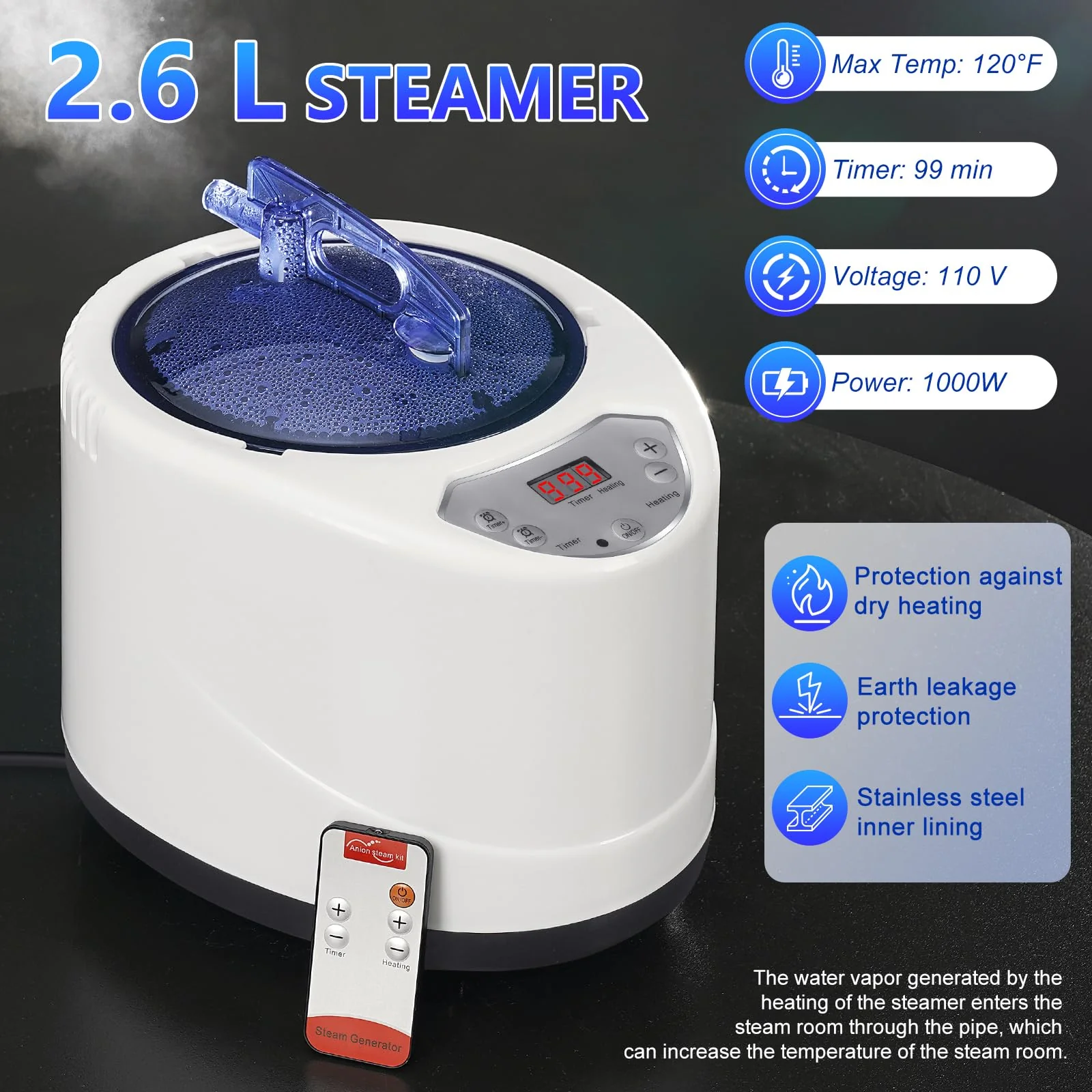 - 【Maximum Temperature 120℉/1-99 mins Timer】The high-power steamer can quickly generate steam and shorten the preheating time. You can set the temperature and time on the steamer or with the remote control. The home sauna has anti-dry burning and anti-leakage functions, allowing you to enjoy the sauna with more peace of mind