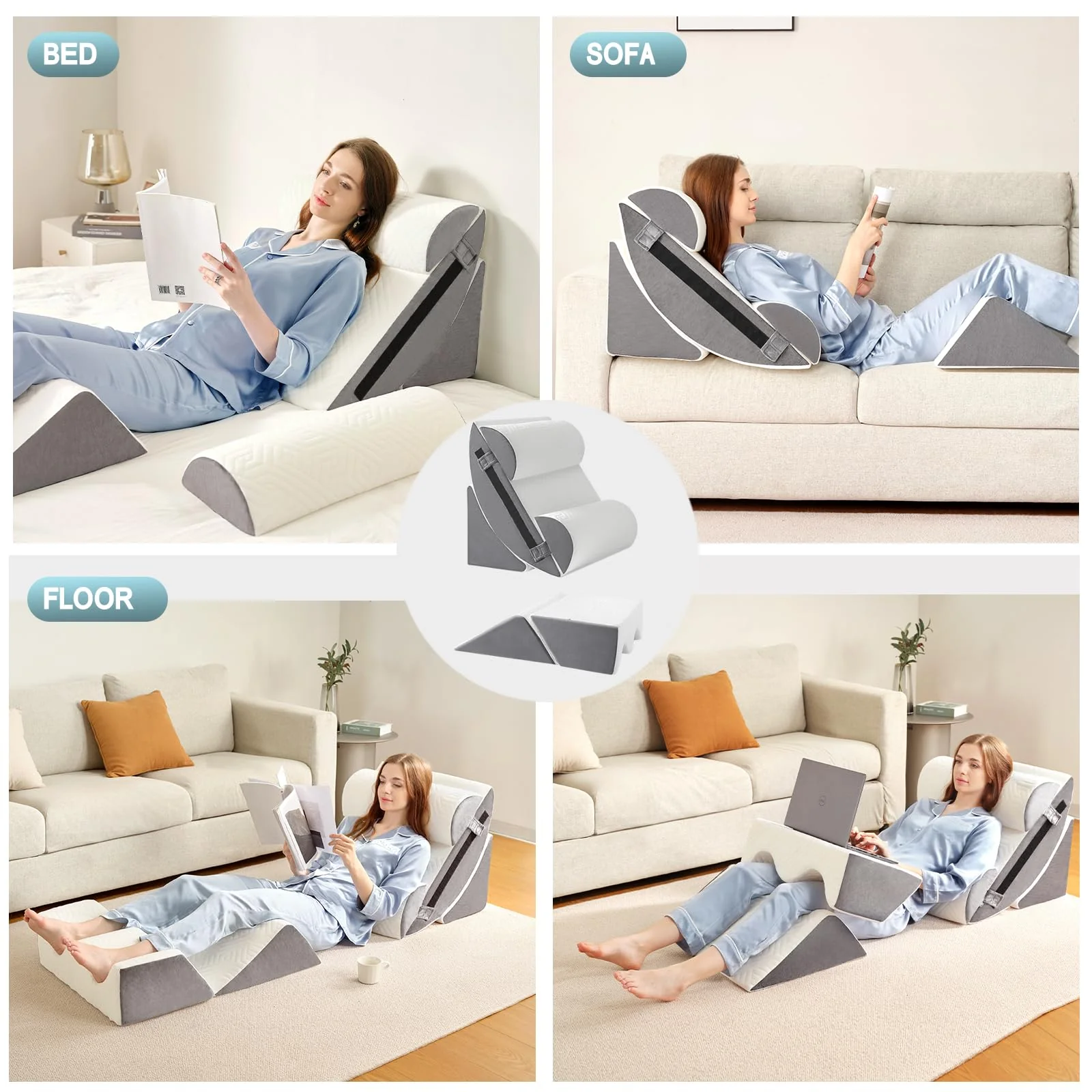 - 【MULTIFUNCTIONAL BED WEDGE PILLOW SET】Yojoker surgery pillow offers 6 parts for customizable combinations. The back pillow with adjustable extension magic tape ensures your perfect comfort position, while the leg pillow doubles as a convenient table. More than 16 ways to use it for more of your needs. It will provide you with all-around support for comfortable posture while reading, surfing the web, being pregnant and sleeping.